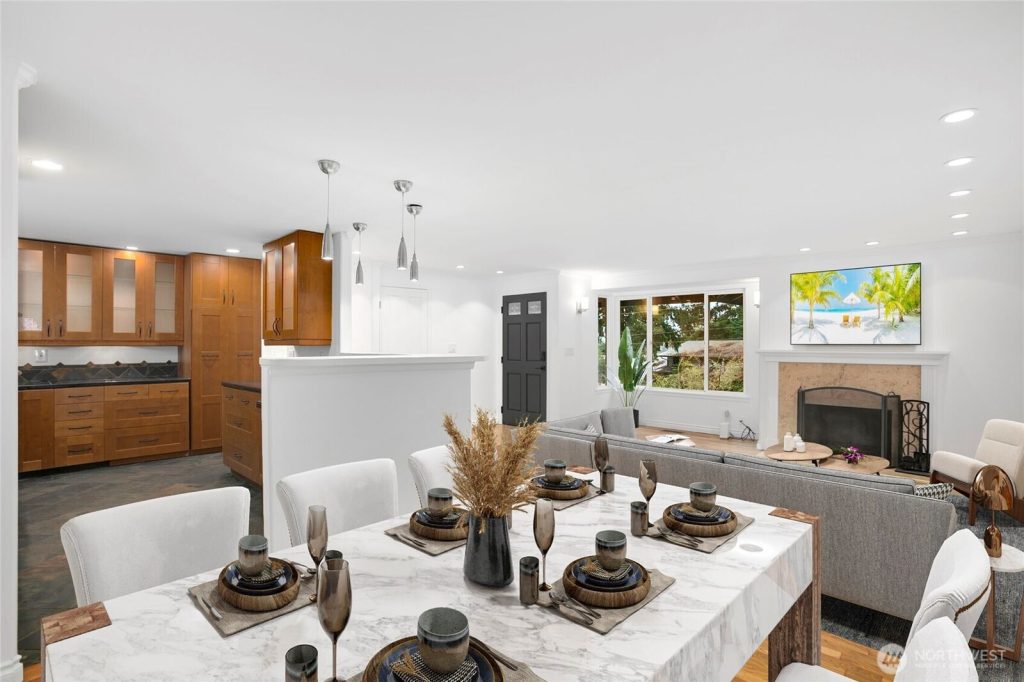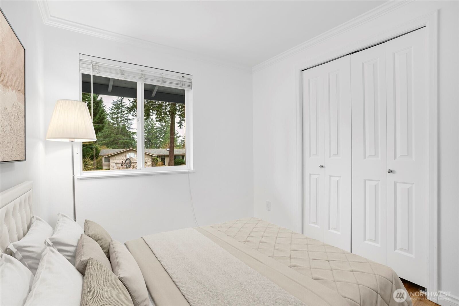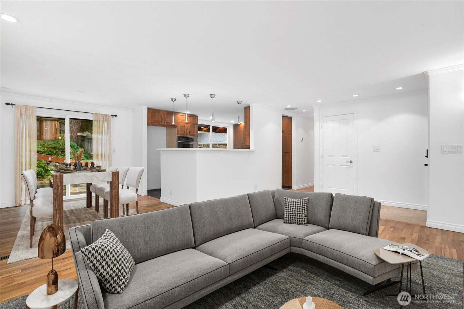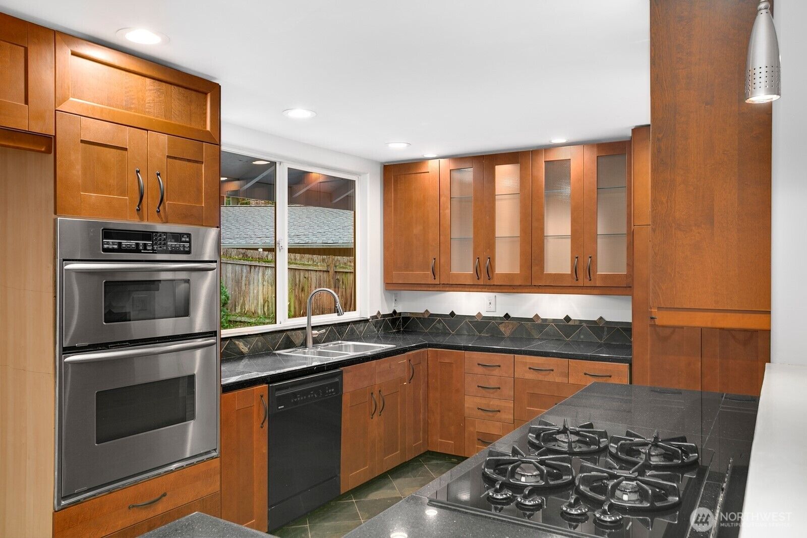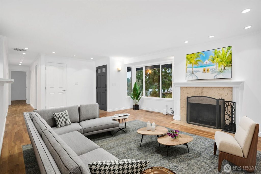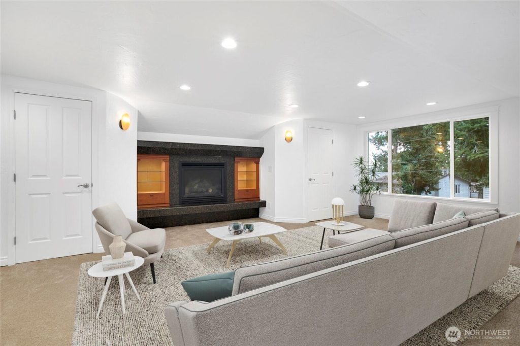 Park-like setting in core Bellevue on a rare, large lot. Near the Light Rail, shops and restaurants in every direction, and an easy commute to several of the Bellevue-Redmond businesses. Corner lot that sits on a cul-de-sac for ultimate privacy and quiet. Come home to an oasis-- New roof, freshly painted exterior, and interior, electrical updates, new water gas water heater (2025), hardwood floors were recently refinished, new carpet in large private guest suite/media room/flex room with gas fireplace. Kitchen opens up to dining and living rooms with sliding glass door to your private backyard. 2 car garage.