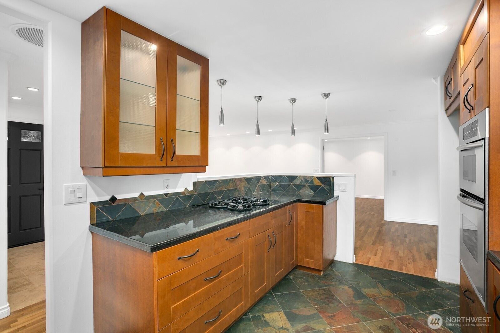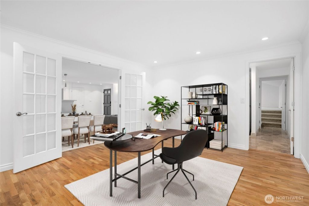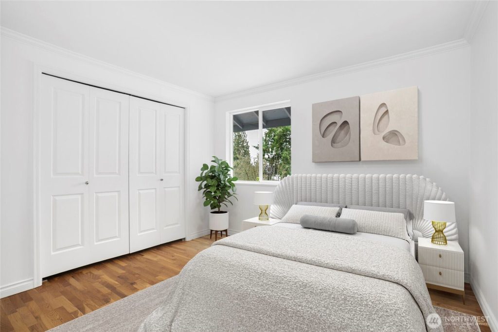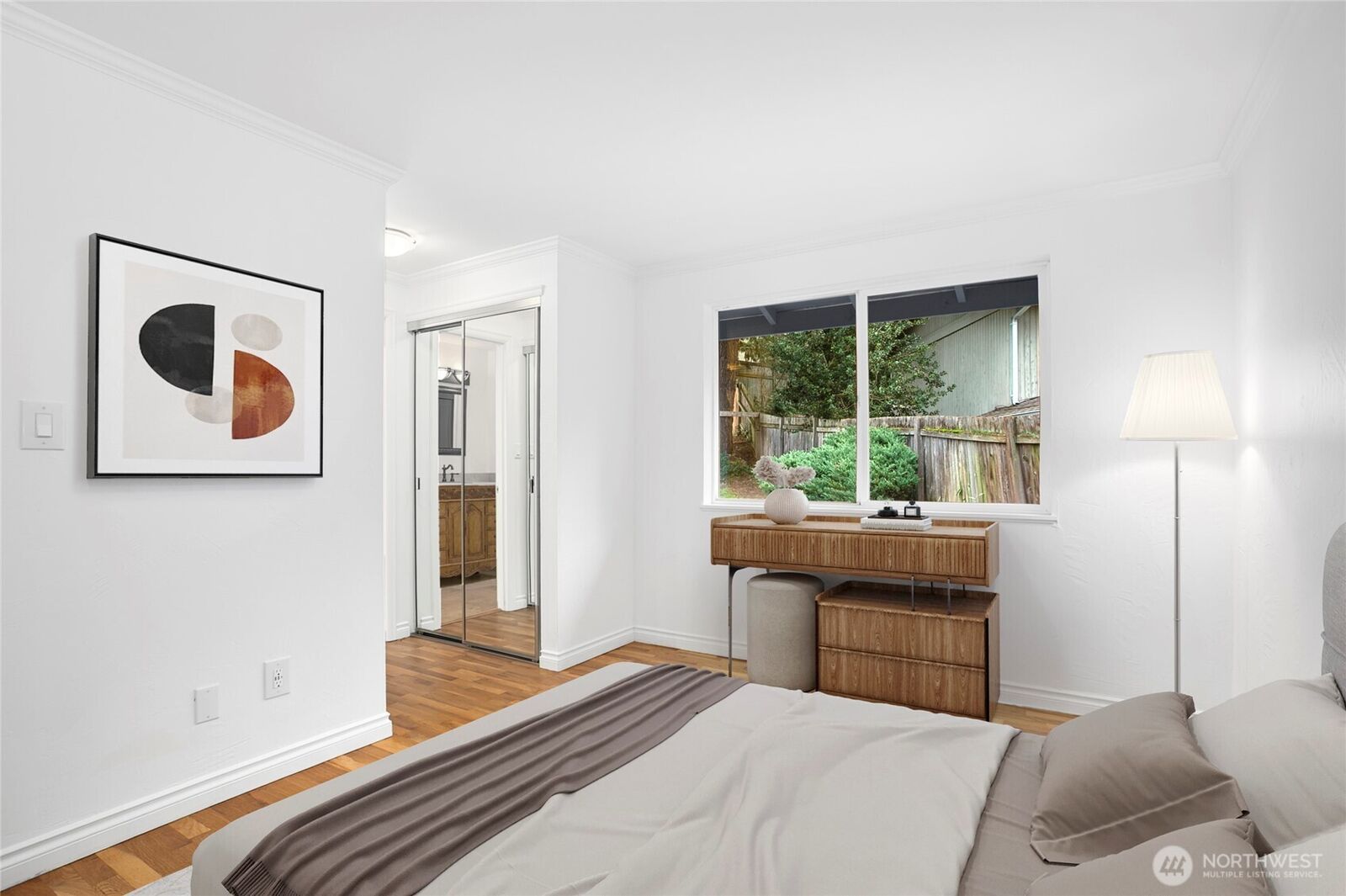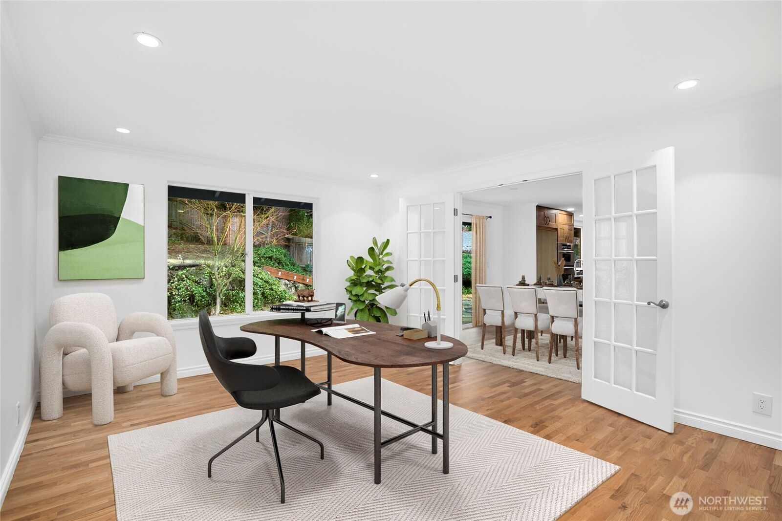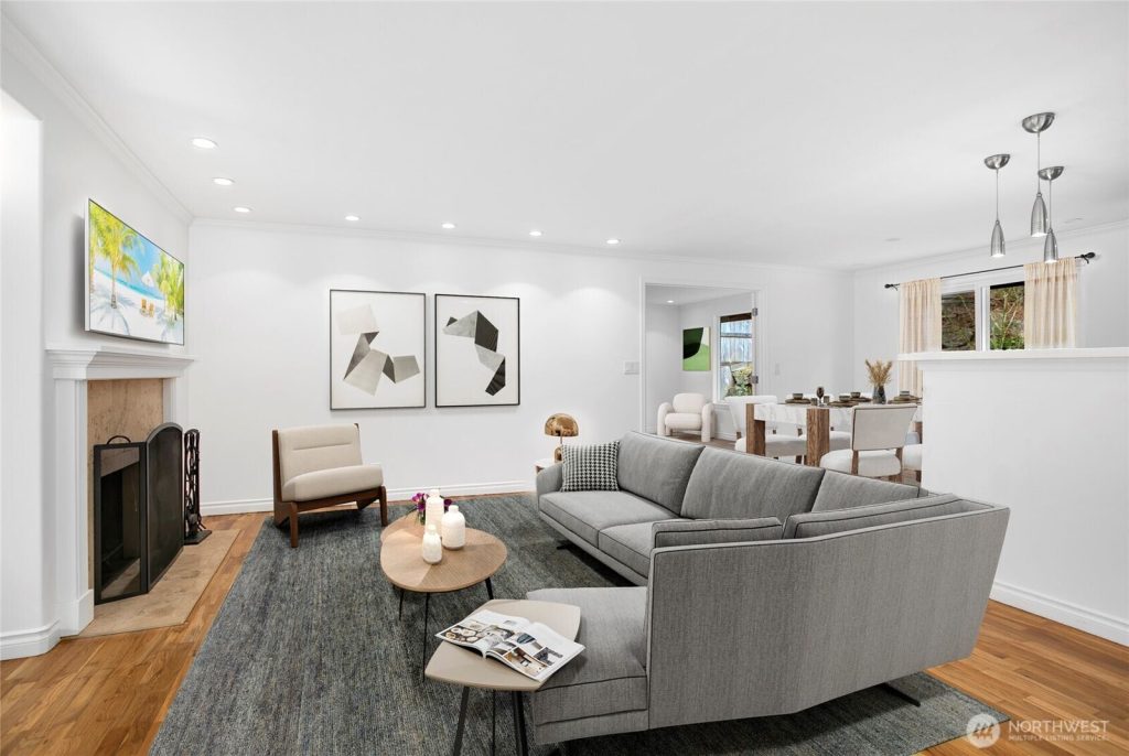 Park-like setting in core Bellevue on a rare, large lot. Near the Light Rail, shops and restaurants in every direction, and an easy commute to several of the Bellevue-Redmond businesses. Corner lot that sits on a cul-de-sac for ultimate privacy and quiet. Come home to an oasis-- New roof, freshly painted exterior, and interior, electrical updates, new water gas water heater (2025), hardwood floors were recently refinished, new carpet in large private guest suite/media room/flex room with gas fireplace. Kitchen opens up to dining and living rooms with sliding glass door to your private backyard. 2 car garage.